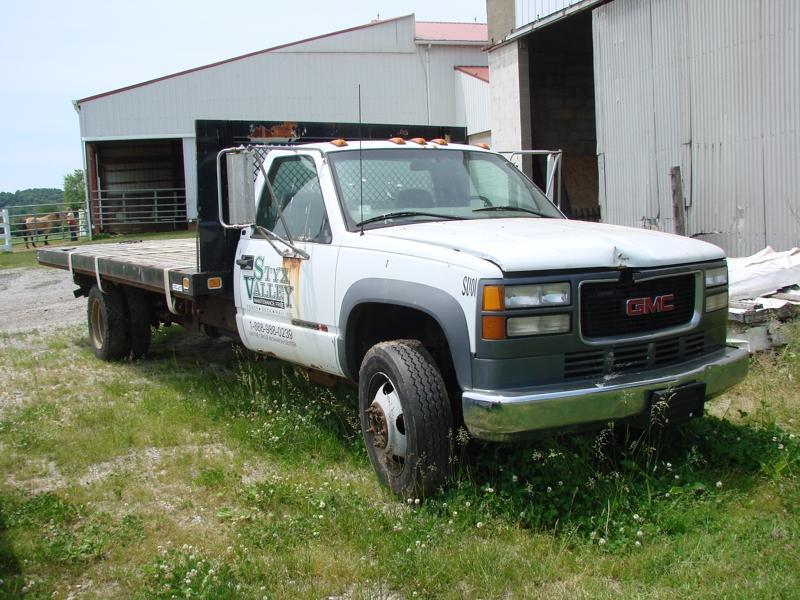 FLAT BED TRUCK, GMC, 3500 HD SL, VIN# 3GPKC34G11M104757, 2001, 153,587 MILES, DUALLY, 18′ FLAT BED, AUTOMATIC TRANS, 8.1 V-8 ENGINE