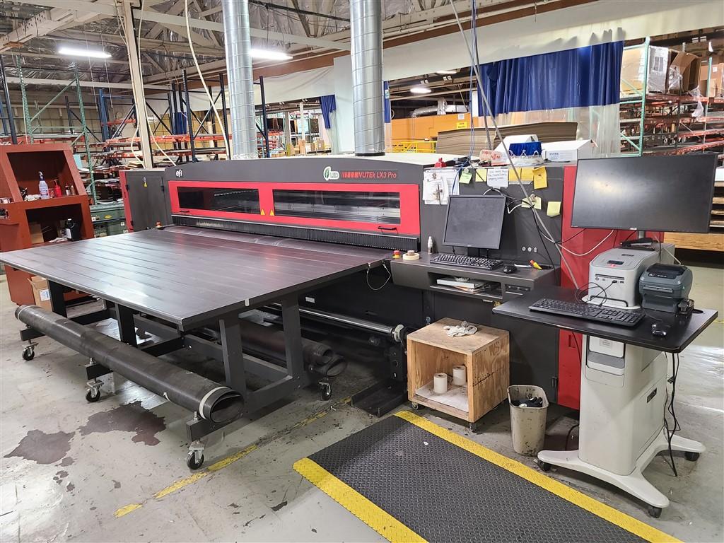 (2017) ROLL TO ROLL FLAT BED UV PRINTER, EFI VUTEK, MDL LX3PRO, SER# 293115, 5'X127" FRONT TABLE, 5'X127" REAR TABLE