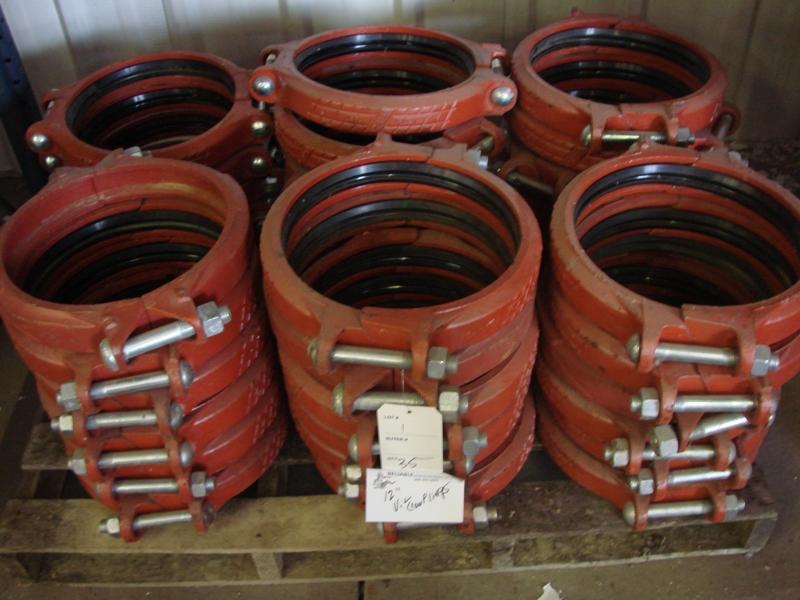 Pipe Couplings, Fittings & Flanges; Hose connectors; Lifting Lugs; Chrome Trim & Drains; (90) Drawer Brass Pipe & Hose Fittings; Large Quantity Flange Bolts; Large Inventory of Victaulic Zero Flex Fittings & Couplings; Pipe hangers; Orion and Infield Acid Waste Pipe Fittings; PVC Fittings; Plumbing Fixtures; Electrical; Safety Switches; Water Fountains; Hose Clamps; Test Floats for Toilet; (2) Hotel Heating/AC Units; Air Filters; Rain Gear & Safety Items; Beam Clamps; Galvanized Pipe Nipples & Fittings; Copper Clevis’; Black Clevis’; Air Pressure Regulators; Copper Pipe Fittings; Copper Riser Clamps; Copper Unions & Dielectric Couplings; Rittling Hot Water Unit Heaters, #RH24, RH86 & RH95.
