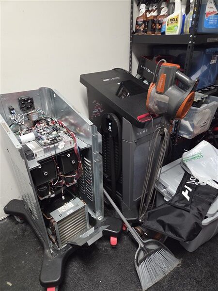 GROUP OF SMALL EQUIPMENT TO INCLUDE BUT NOT LIMITED TO CHAIRS, VACUUM, FOAM ROLLERS, SHELVES, LIGHTS, BINS, VARIOUS PARTS, WATER COOLER, REFRIGERATOR, MICROWAVE, ETC.